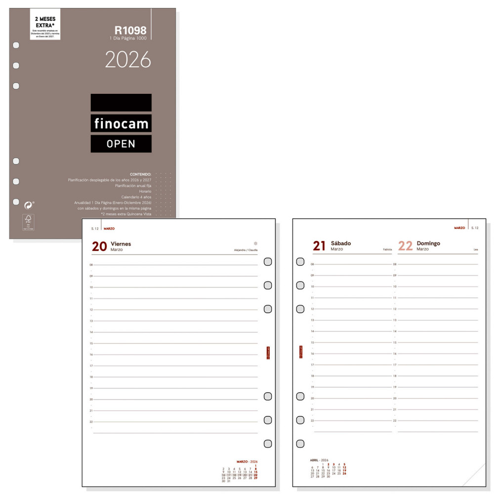 Recambio anual para agendas de anillas Finocam Open.
