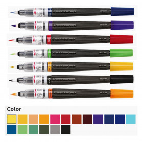 Pincel recargable de bolsillo. Con cerdas sintéticas muy resistentes cuya punta conserva la forma. Tinta negra resistente al agua y a la decoloración. Ideal para bocetos, diseños, caligrafía... Modelos opcionales según el color del cuerpo o carcasa del ejemplar.
