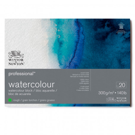 Bloque con 20 hojas de papel 300 gr/m2 para acuarela con encolado a los 4 lados. Fabricación 100% algodón en tres texturas opcionales: grano grueso, fino y satinado. Libre de ácido. No amarillea con el tiempo. Calidad profesional.