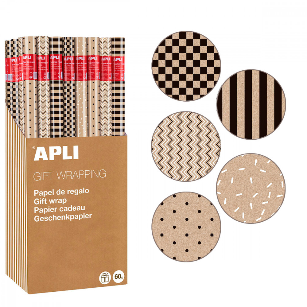 Fabricado en papel kraft de alta calidad en 5 estampados diferentes. Ideal para envolver con facilidad y conseguir un acabado impecable.