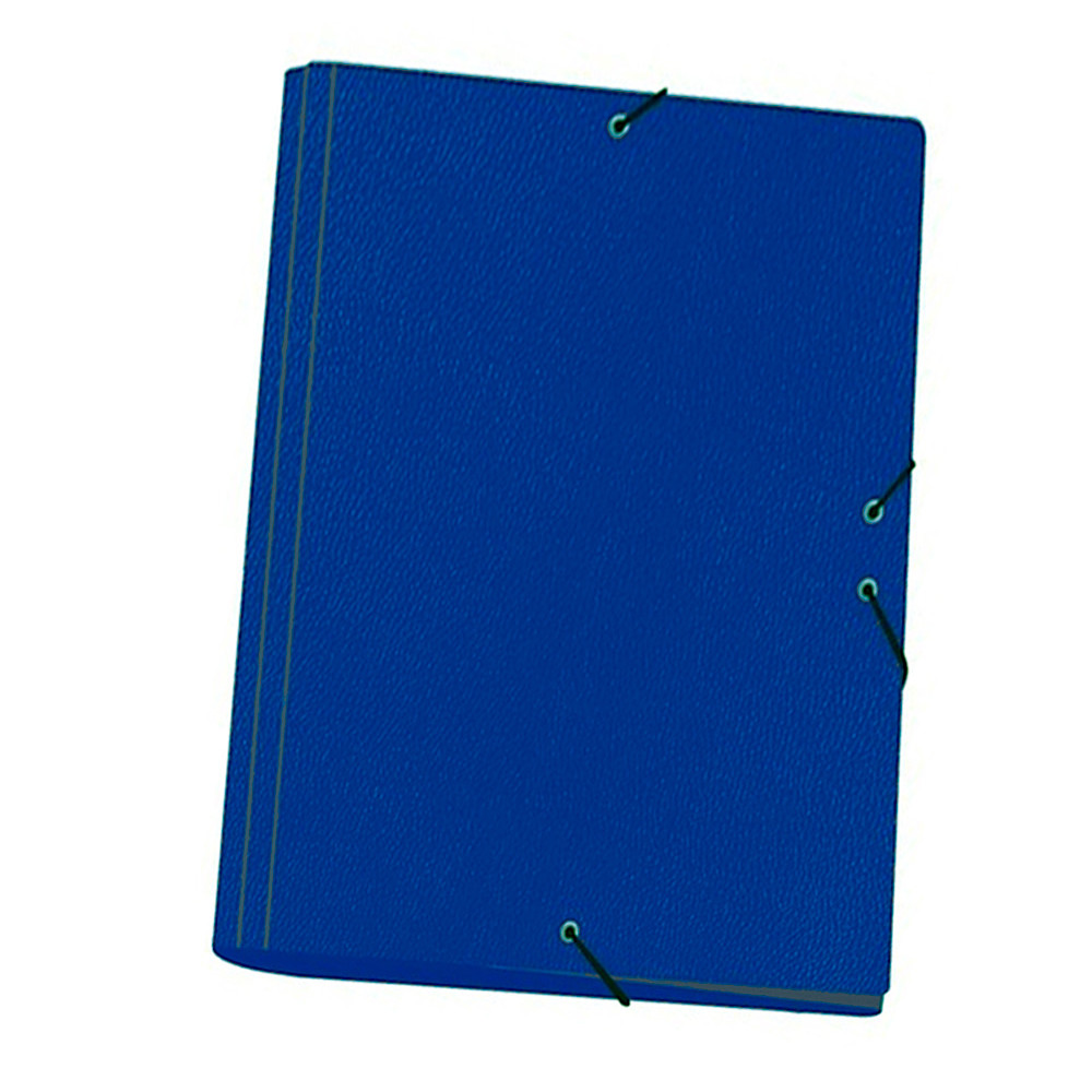 Carpeta con goma elástica de cierre. Fabricada en cartón compacto nº 10 color azul satinado. Tamaño folio.