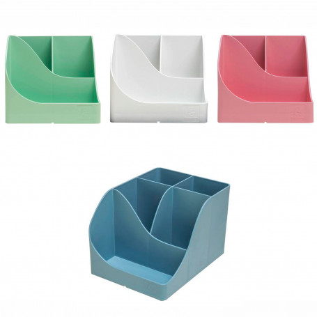 Organizador de material de escritorio con 5 compartimentos. Fabricado en poliestireno mate de colores.