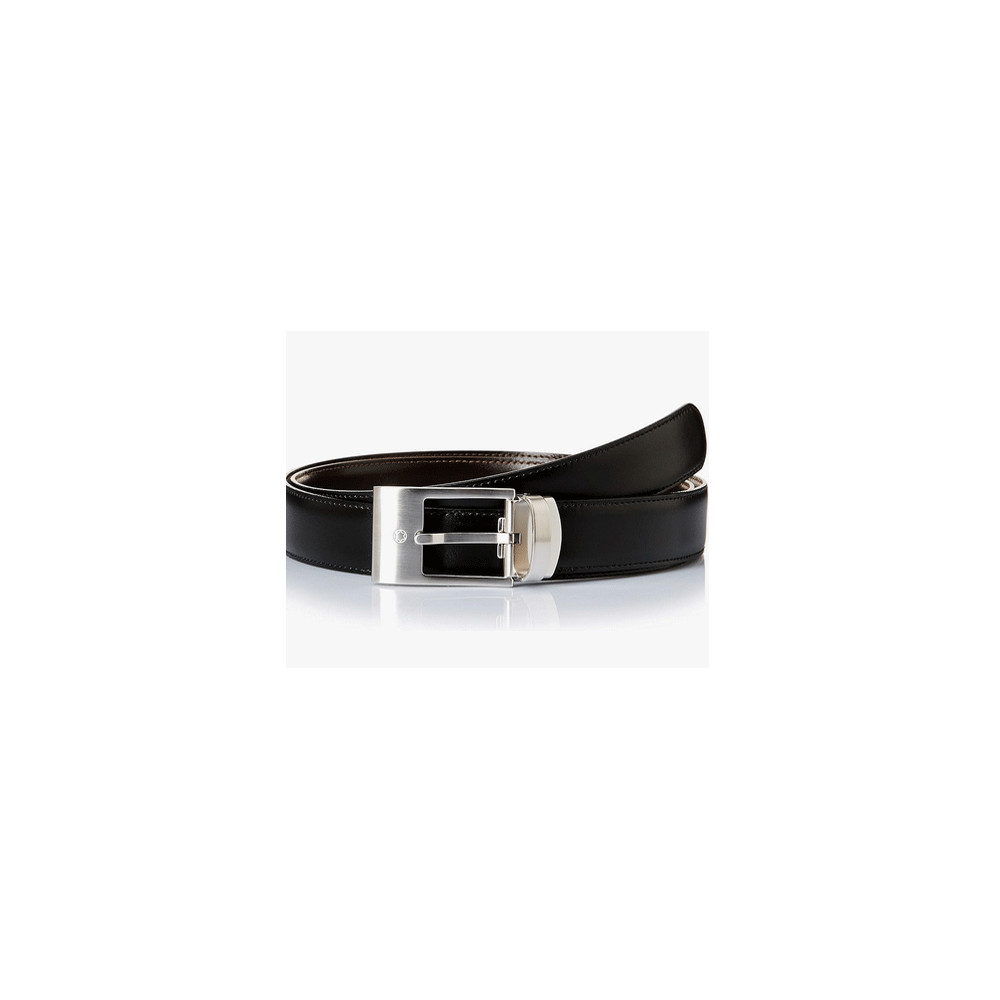 Elegante cinturón piel reversible en color negro y marrón para usarlo a diario con acabado satinado y revestimiento de paladio con emblema Montblanc