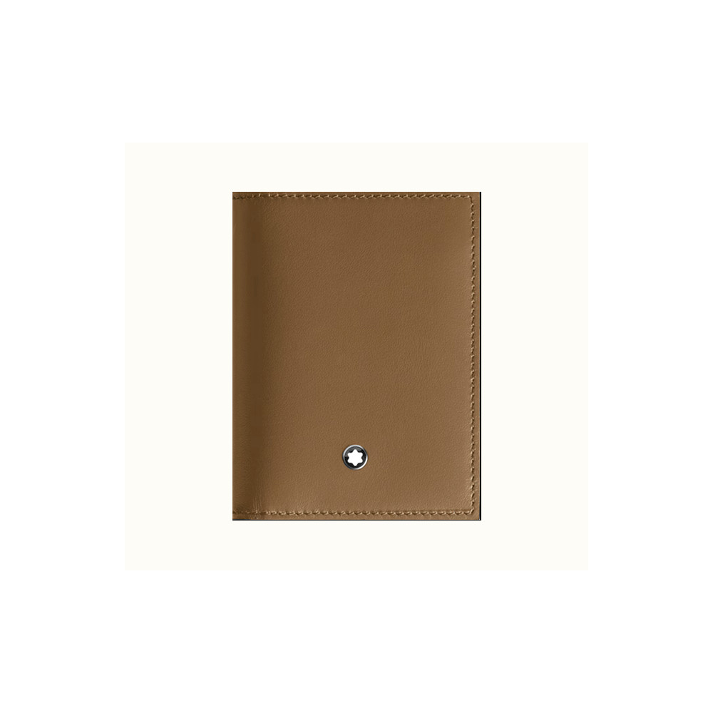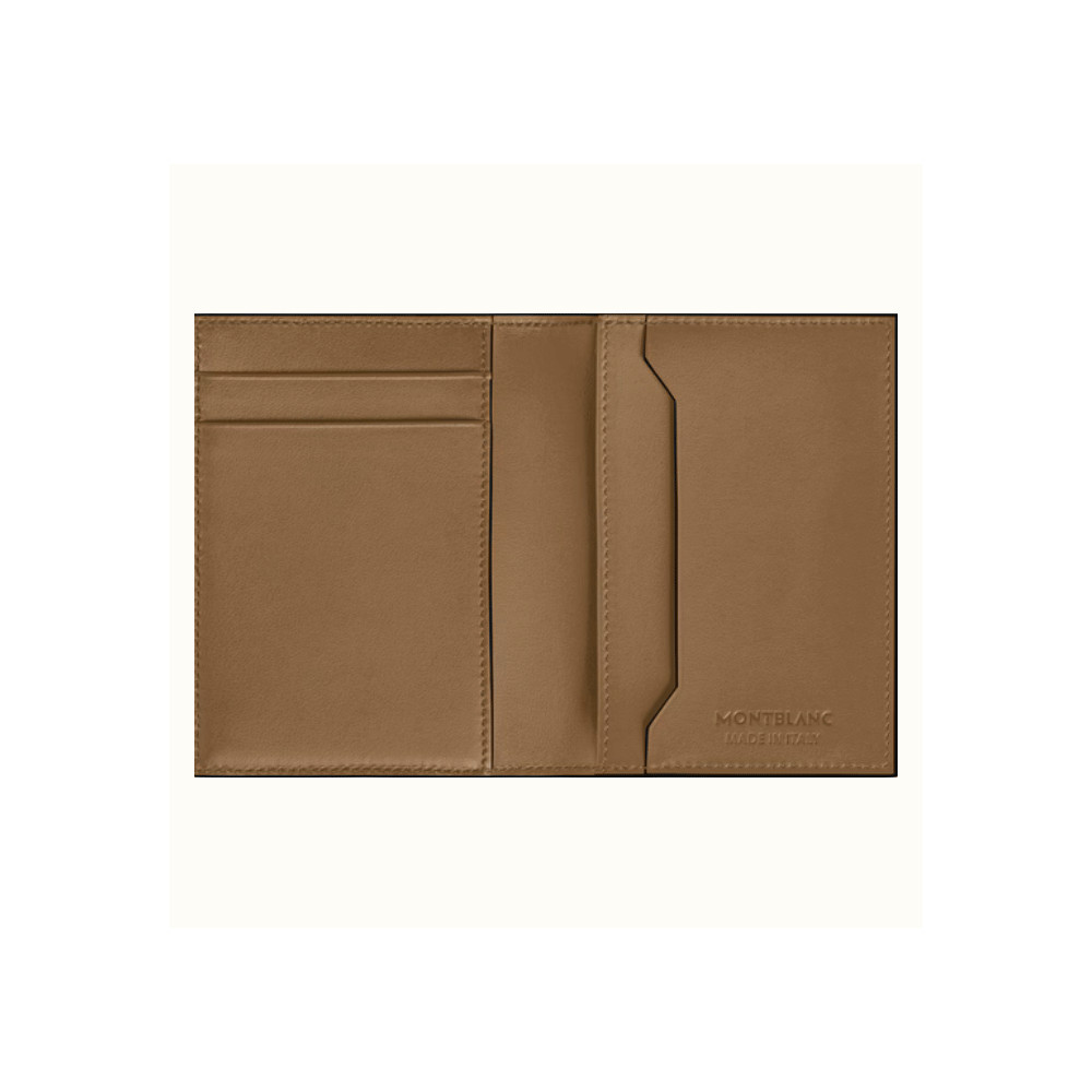 Eleva tu día a día con este portatarjetas de lujo en piel de becerro Meisterstück color arena. Compacto y elegante, ofrece acceso rápido con ranura exterior, tres ranuras interiores, espacio para tarjetas de visita y bolsillo para recibos o esenciales.