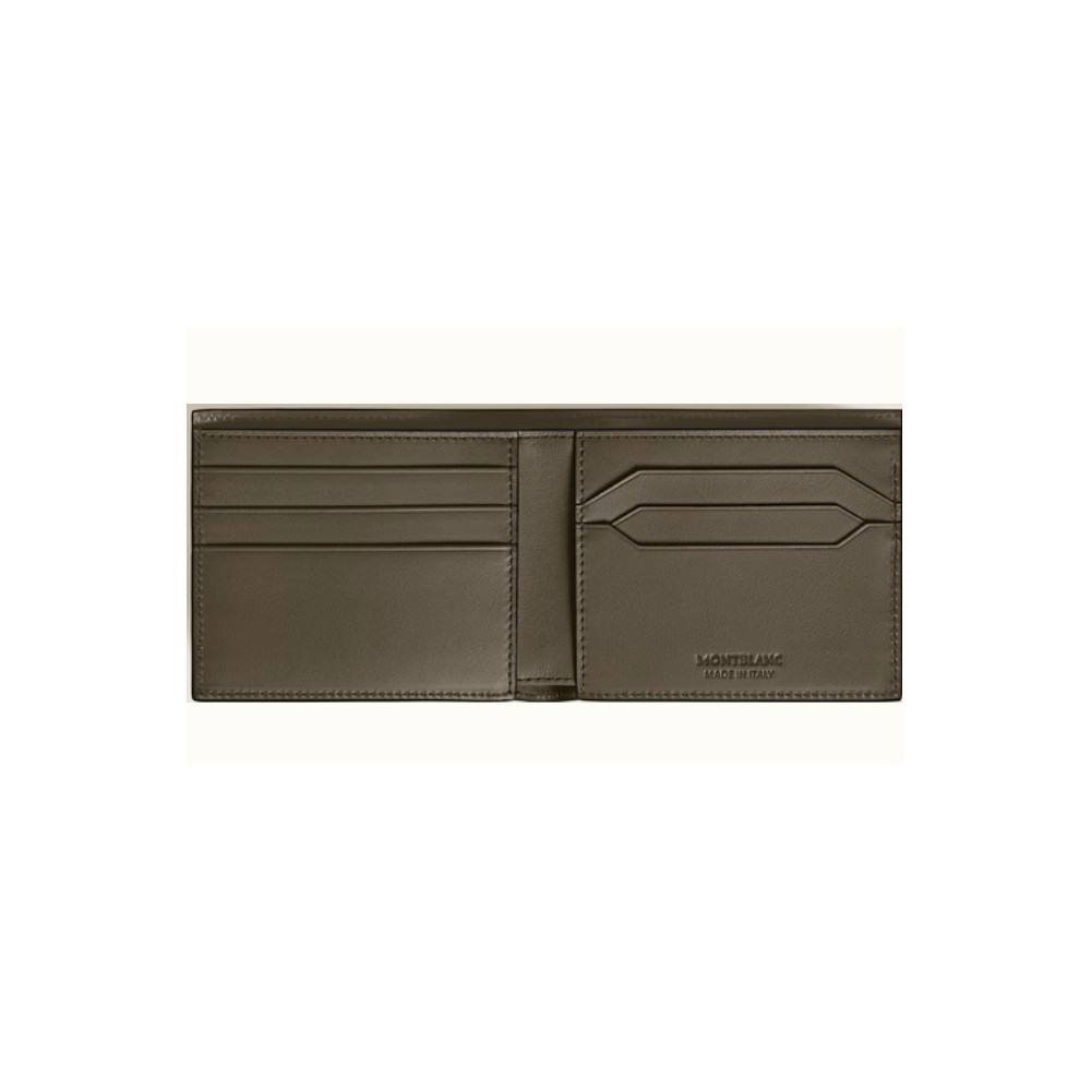 Esbelta y elegante, esta cartera plegable es ideal para el día a día. En piel estampada Extreme 3.0 color caqui, ofrece seis ranuras para tarjetas, dos compartimentos para billetes, bolsillos para recibos y emblema Montblanc.