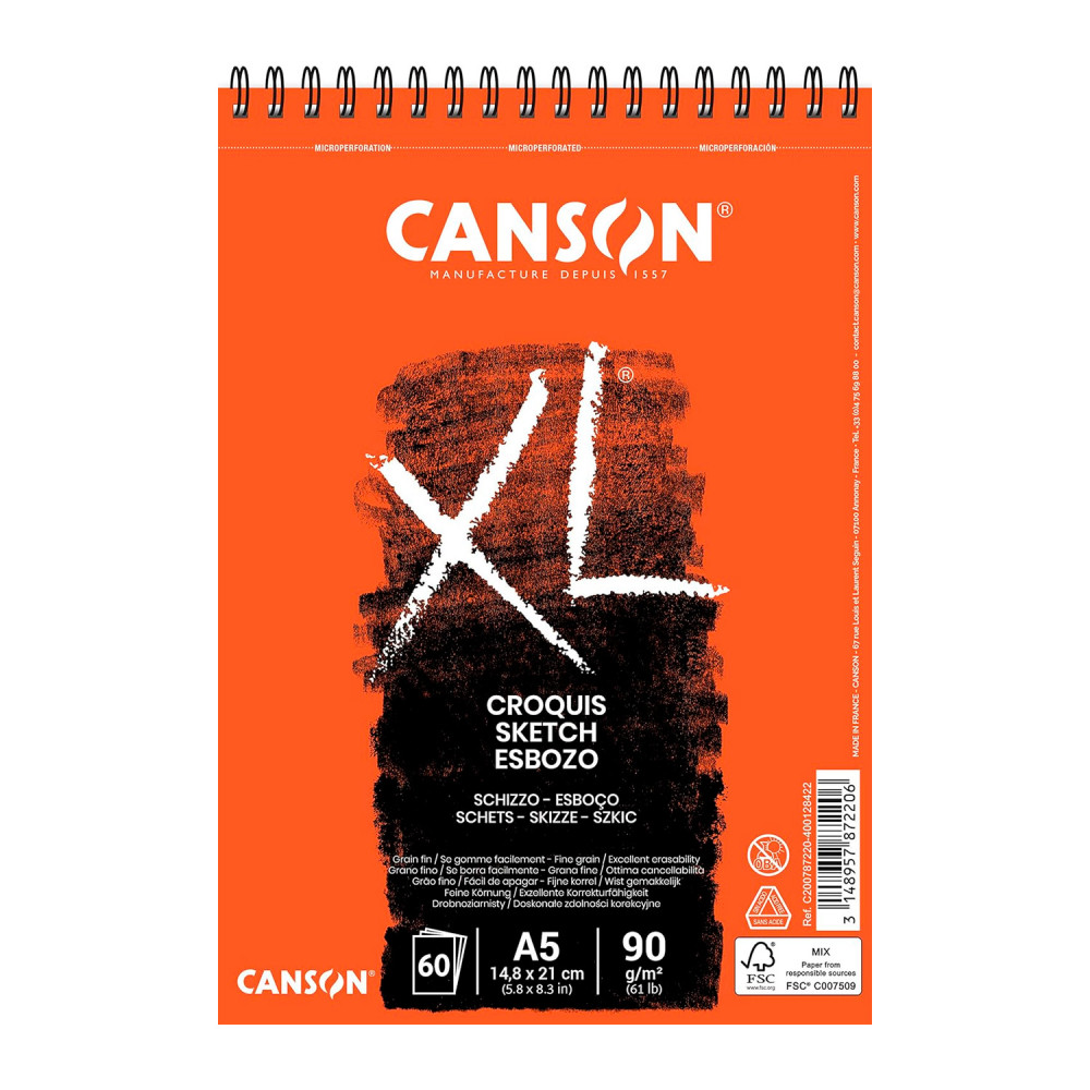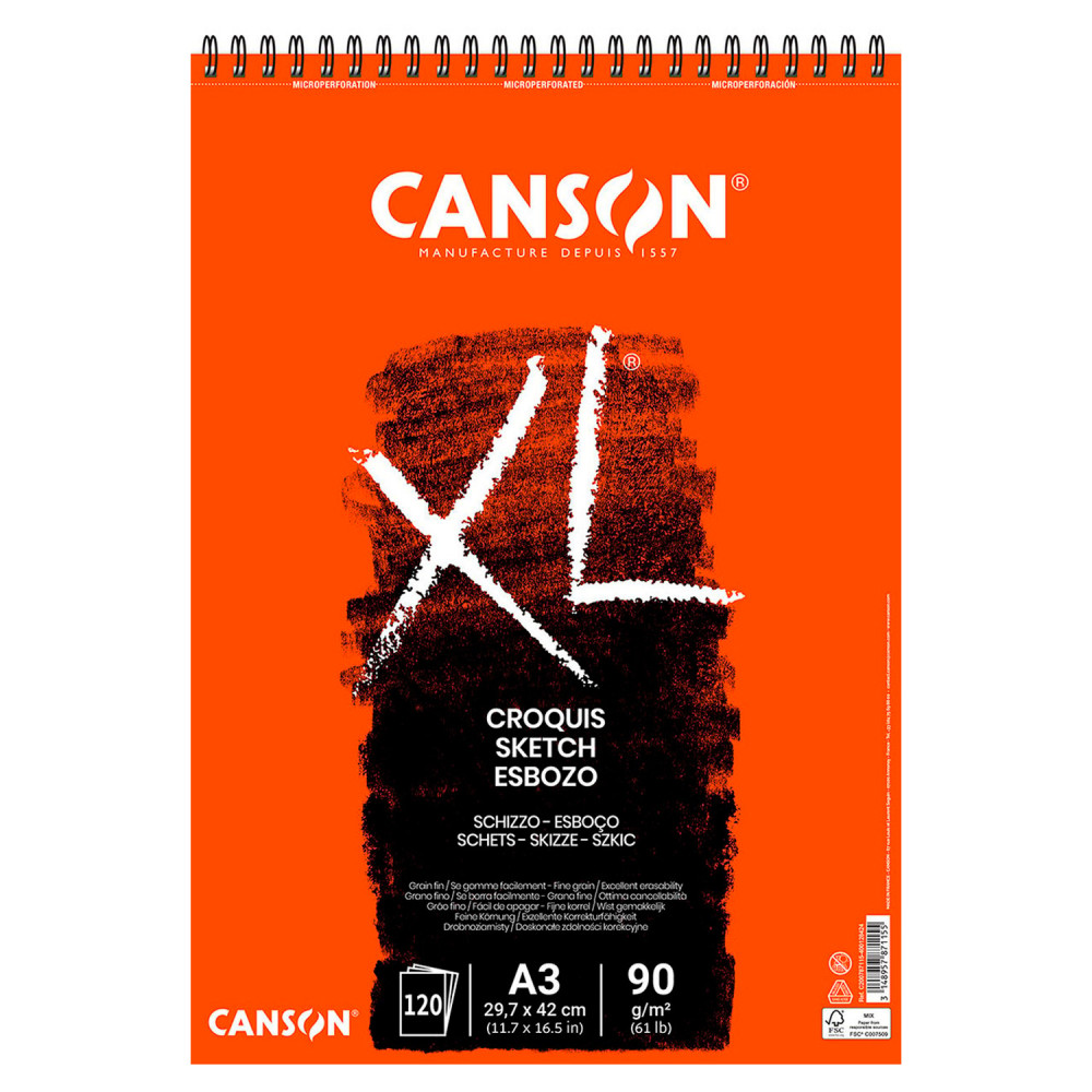 Cuaderno de dibujo con espiral y papel microperforado color marfil de 90 g/m2 libre de ácido y blanqueadores ópticos. Papel con textura de grano fino. Ideal para esbozos o estudios rápidos en lápiz, pastel, carboncillo o sanguina.