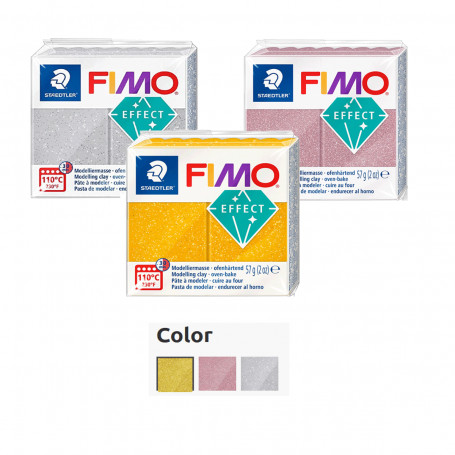 Pasta de modelar de secado al horno. Colores brillantes con purpurina, mezclables con Fimo effect, Fimo kits... Pasta polimérica ideal para crear objetos de decoración, miniaturas, joyas...Gama colores efecto Purpurina.
