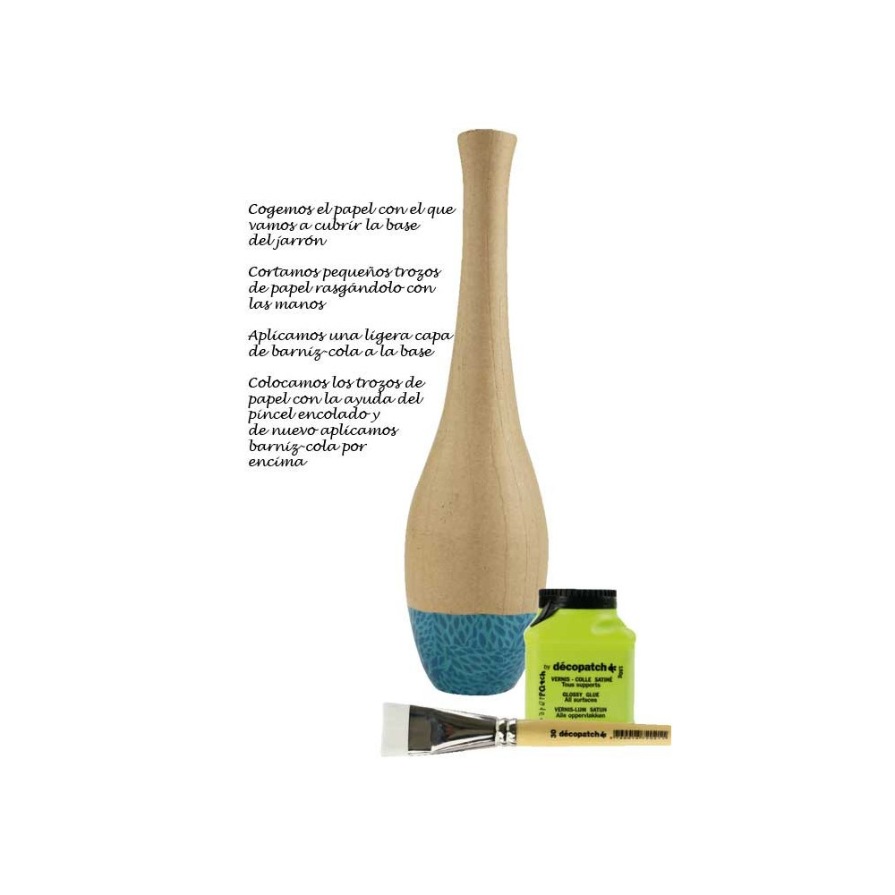 - Adherible sobre cualquier tipo de material: papel maché, cartón, porexpan, plástico, madera, metal, vidrio... incluso sobre textiles