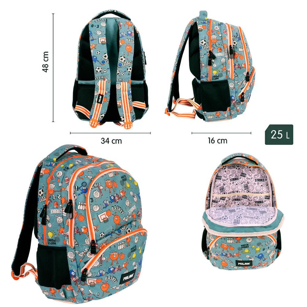 Mochila con base reforzada, asas regulables y parte posterior acolchada y transpirable. Incluye bolsillo principal con compartimento interior protector para portátil, 3 bolsillos delanteros, 2 bolsillos laterales de malla de fácil acceso. Modelos opcionales.