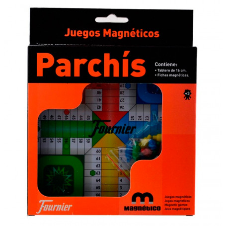 Juego del parchís con tablero magnético de pequeñas dimensiones y fichas imantadas. Para llevar a todos los sitios y disfrutar del juego en cualquier momento.