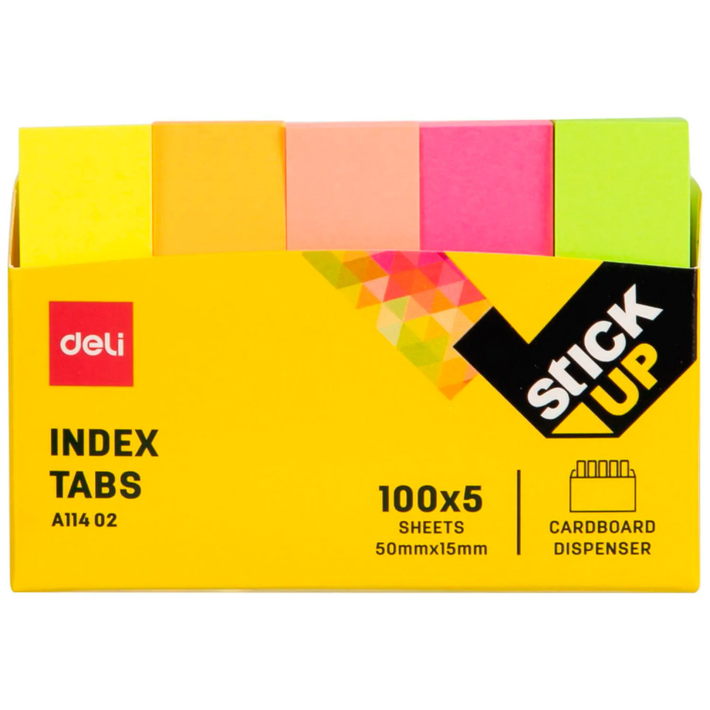 Banderitas adhesivas reposicionables Deli Stick up de 50 x 12 mm. Superficie apta para escribir anotaciones. Colores Neón.