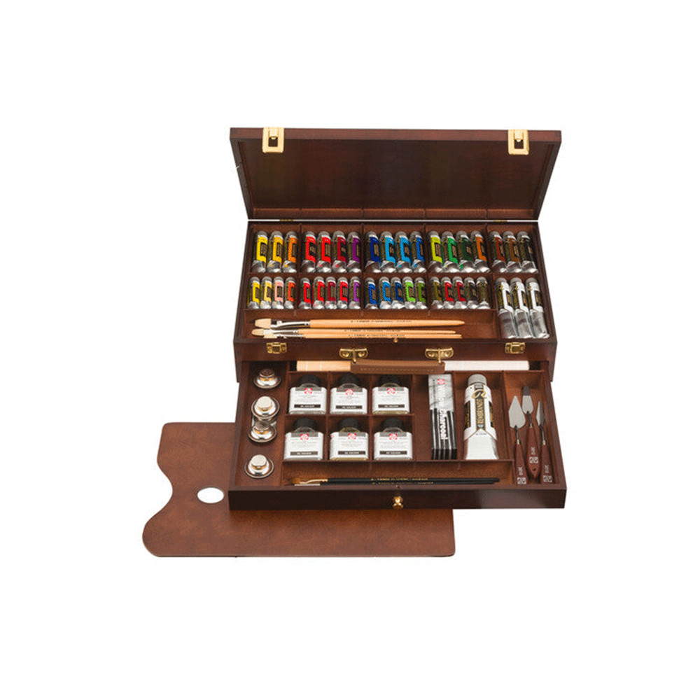 Óleo Rembrandt elaborado con las mejores materias primas con una alta concentración de pigmentos de primera calidad que su resultado es de un grado máximo de resistencia a la luz y ofrece una pincelada nítida por su consistencia