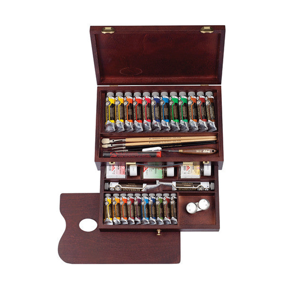 Óleo Rembrandt elaborado con las mejores materias primas con una alta concentración de pigmentos de primera calidad que su resultado es de un grado máximo de resistencia a la luz y ofrece una pincelada nítida por su consistencia