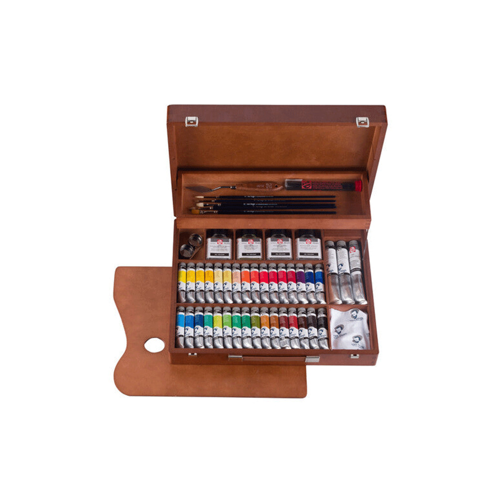 Los óleos Van Gogh de Talens combinan pigmentos puros, textura cremosa y gran pastosidad, facilitando pinceladas suaves y mezclas perfectas. Con 66 colores vibrantes, ofrecen alta cobertura y resistencia a la luz, permitiendo crear obras expresivas y duraderas con calidad profesional