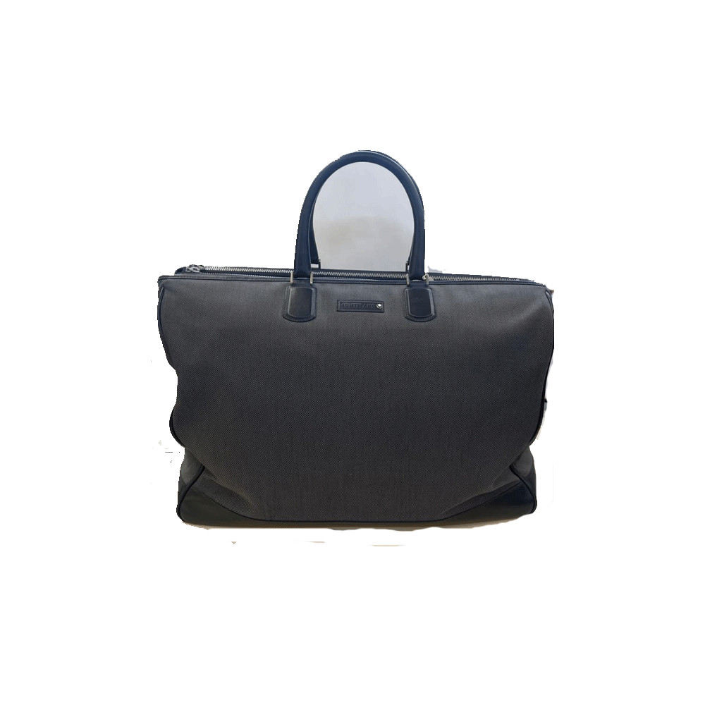 Bolso tipo tote de la colección Meisterstück de Montblanc, en lona gris con detalles en piel negra. Diseño elegante y funcional, con amplio espacio interior y el icónico emblema frontal que aporta sofisticación y estilo atemporal y uso diario