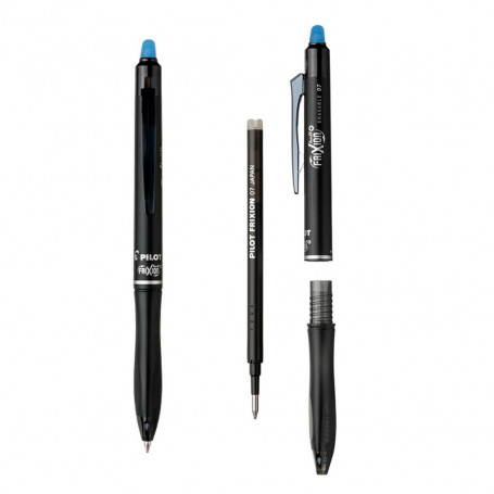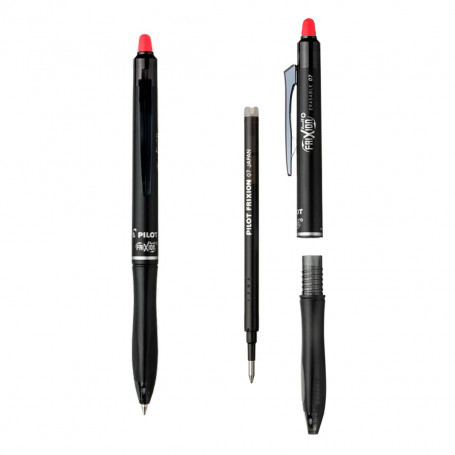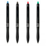 Bolígrafo con tinta borrable. Diseño ergonómico y elegante: mecanismo retráctil, base triangular y acabado en negro mate. Fabricado con plástico reciclado en más del 80%. Colores de tinta opcionales: azul, negro, rojo y verde.
