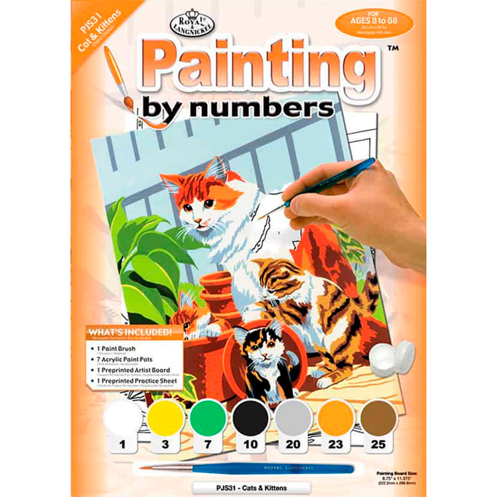 Proyecto de pintura con pincel indicado para personas de a partir de 8 años. Contiene soporte prediseñado y numerado en el que cada número está asociado a un color o a una mezla de dos.