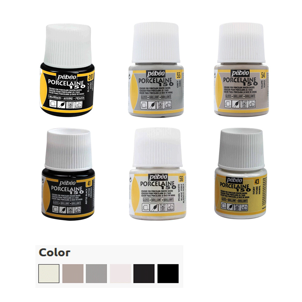 Pintura resistente al lavavajillas después de su fijación a 150º en horno doméstico. Pueden mezclarse entre sí, aspecto esmaltado. Colores a base de agua.