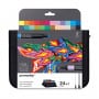 Selección de 24 colores. Cada rotulador tiene dos extremos, un extremo de mayor superficie de contacto, en forma de cincel y al otro extremo una punta mas fina, en forma de bala, para un trabajo más detallado. Tinta con base alcohol. Indicados para aficionados a la ilustración y estudiantes de arte, moda, diseño gráfico...