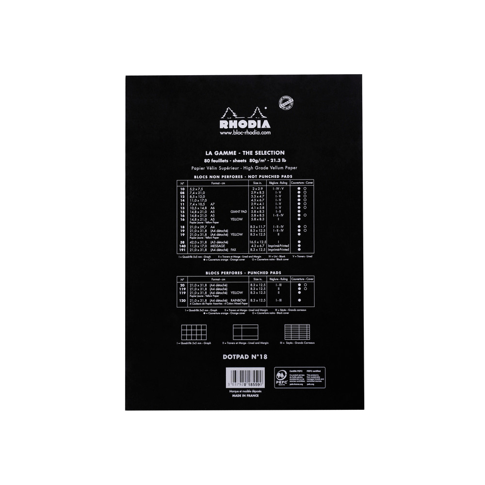 Bloc de notas punteado Rhodia en formato A4. Ideal para escribir, dibujar o planificar con precisión y elegancia. Diseño limpio, papel de alta calidad y puntos suaves.