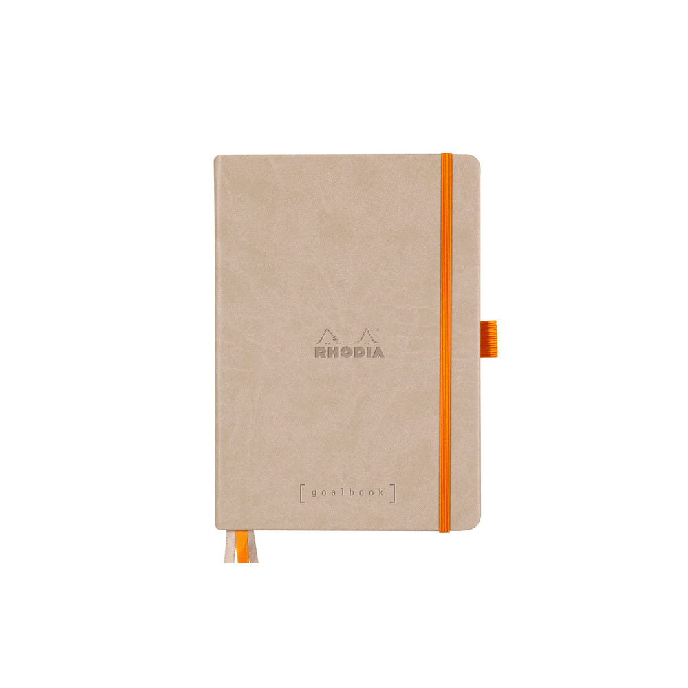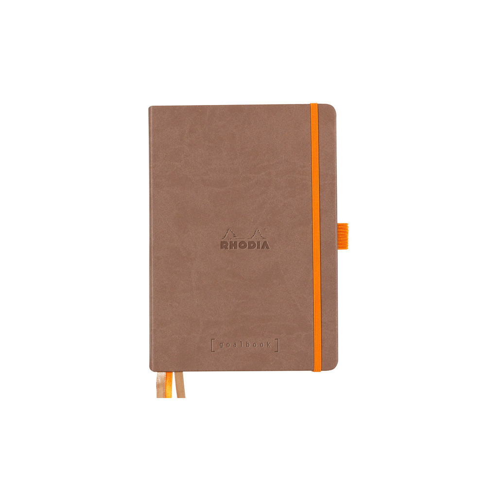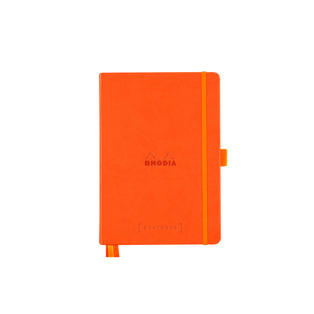 Goalbook con elegante cubierta rígida en simil cuero italiano y cierre elástico naranja. Cuenta con logotipos en relieve y 240 páginas de alta calidad (224 numeradas, 6 de índice y 2 calendarios perpetuos). Incluye porta-lápiz, 3 cintas arcadoras (1 naranja y 2 a juego), pochette desplegable y guardas en color naranja, combinando estilo y funcionalidad en un solo cuaderno.