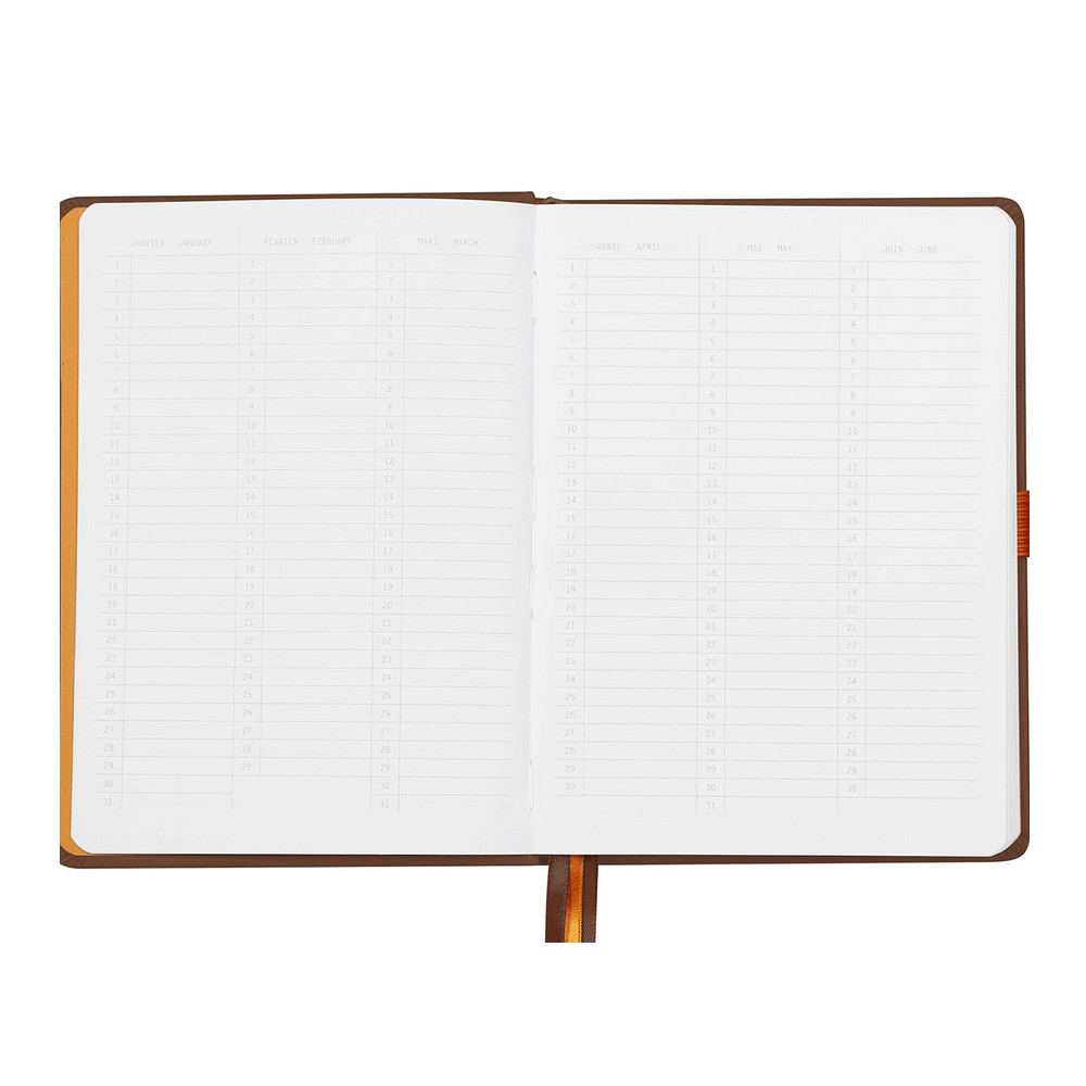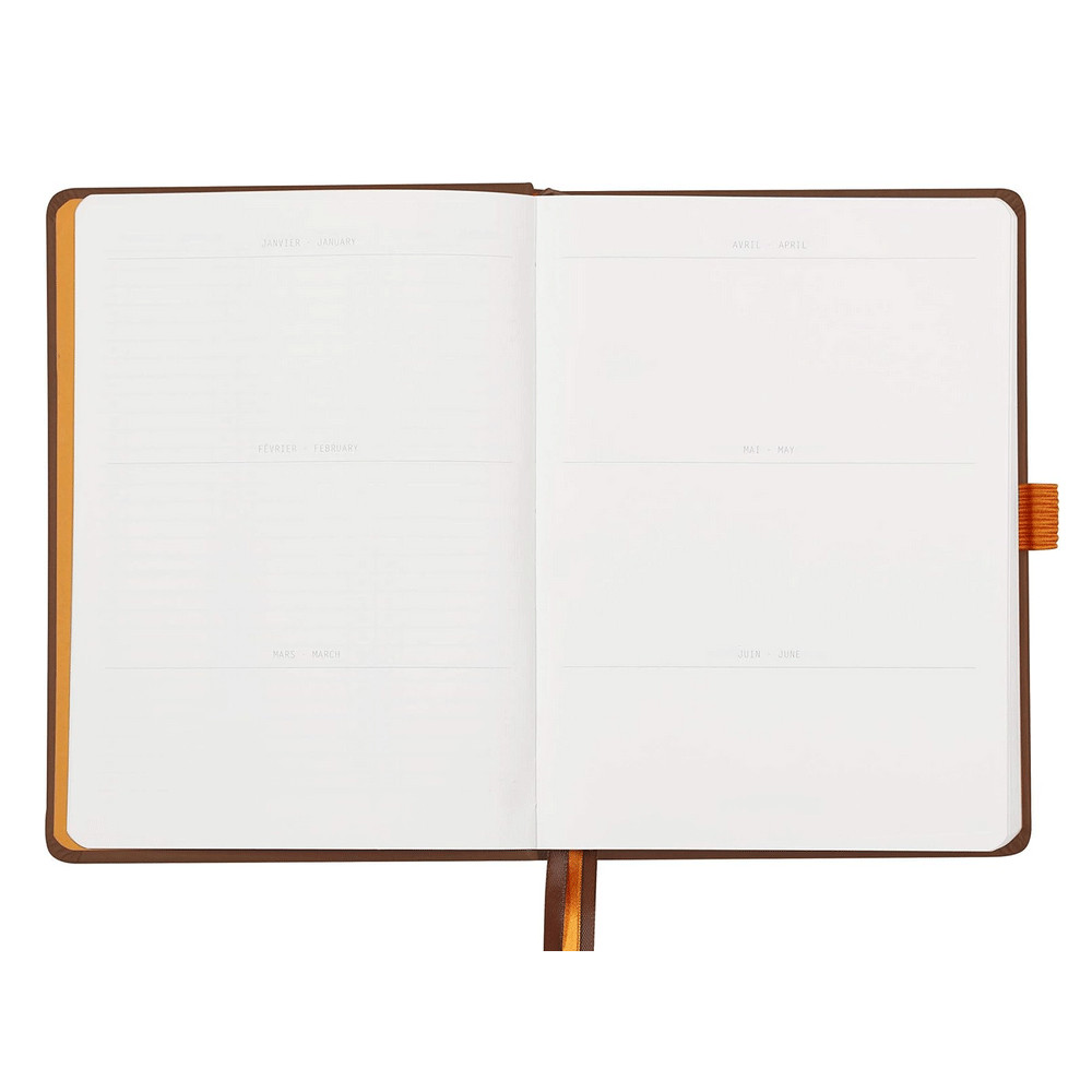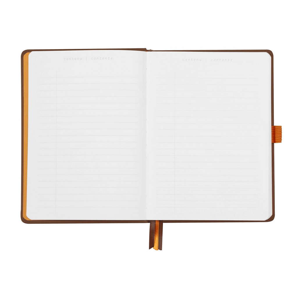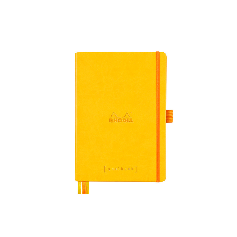 Goalbook con elegante cubierta rígida en simil cuero italiano y cierre elástico naranja. Cuenta con logotipos en relieve y 240 páginas de alta calidad (224 numeradas, 6 de índice y 2 calendarios perpetuos). Incluye porta-lápiz, 3 cintas arcadoras (1 naranja y 2 a juego), pochette desplegable y guardas en color naranja, combinando estilo y funcionalidad en un solo cuaderno.