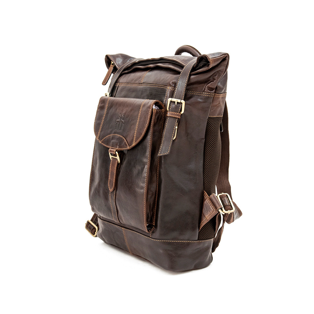 Mochila de gran capacidad de piel de Búfalo con acabado semivegetal con herrajes y bolsillos que no puede faltar en tu aventura