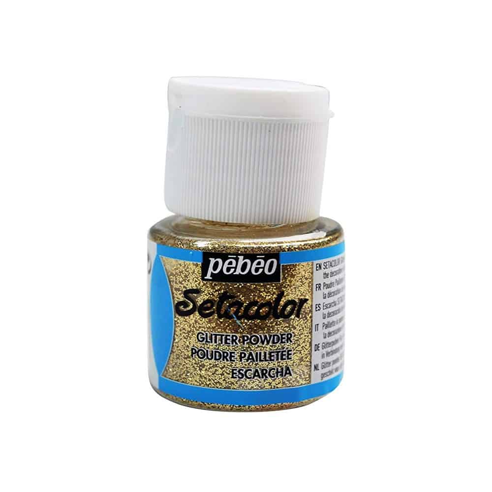 La purpurina puede usarse con el pegamento permanente Setacolor o con el pegamento Setacolor 3D. Una vez aplicado, basta con espolvorear la purpurina del color deseado y fijar.