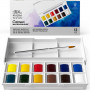 Caja con 12 medias godets de acuarela Cotman y un cómodo compartimento para el pincel.