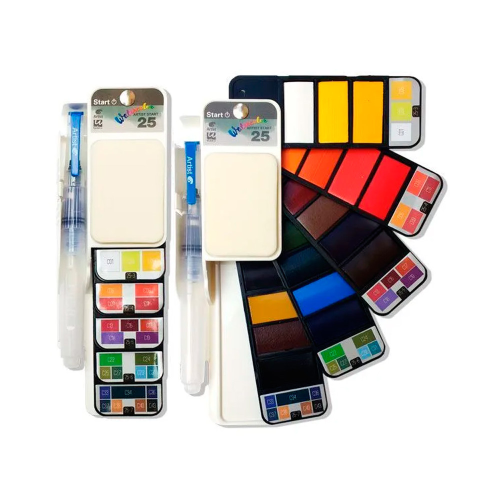 - Set x 25 colores + Pincel rellenable + Paleta desplegable
