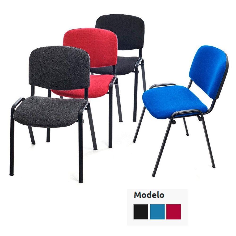 Silla para visitas sin brazos. Estructura tubular metálica color negro. Asiento y respaldo con relleno de espuma y tapizado en tela ignífuga color negro, azul o burdeos.