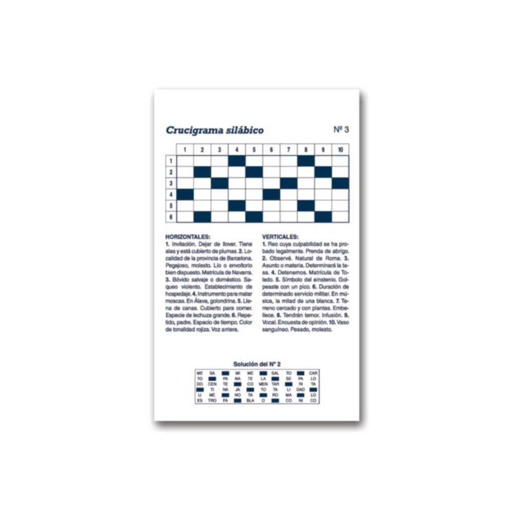 Con información de onomástica diaria, número de semana y día del año, horas de salida y puesta del sol, fases lunares y citas célebres. Todas las hojas llevan pasatiempos en su reverso: crucigramas, sopas de letras, sudokus, jeroglíficos, etc.