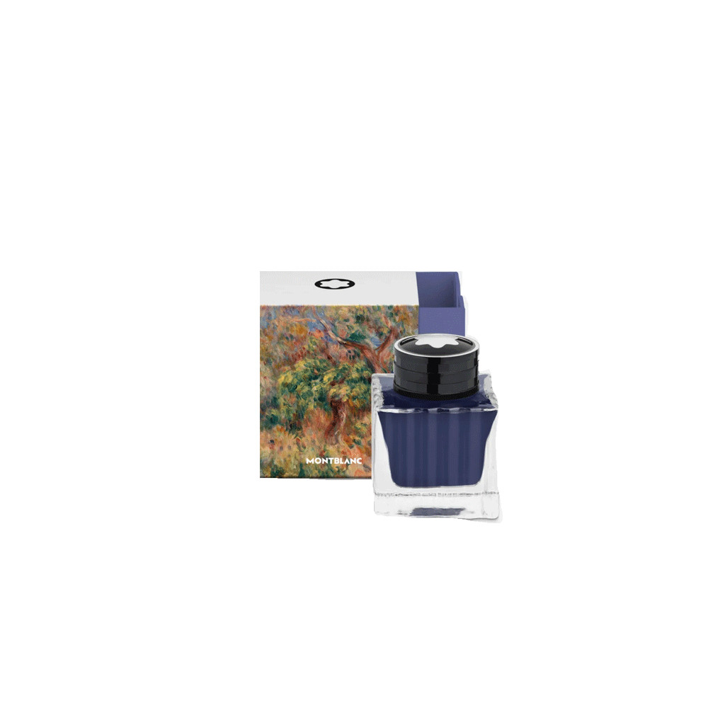 Montblanc Masters of Art Homage to Pierre-Auguste Renoir, Tintero, azul ultramar - 50 ml de Edición Especial se presentan en un recipiente cuadrado que refleja el concepto y los temas de cada colección, convirtiéndose así en valiosos objetos coleccionables para los apasionados de Montblanc.